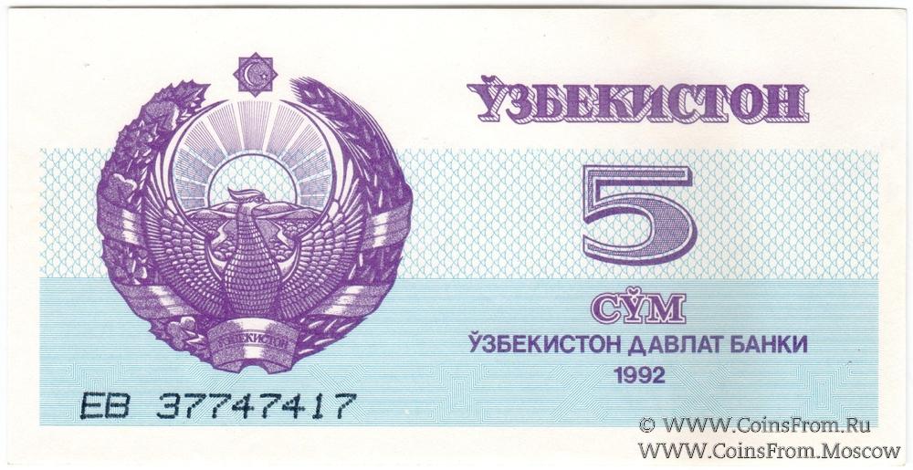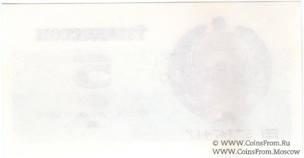 Выпуск 1992 г. БРАК (ПРОБА) печати: односторонний оттиск аверса. Государстенный банк Узбекистана (Ўзбекистон давлат банки).