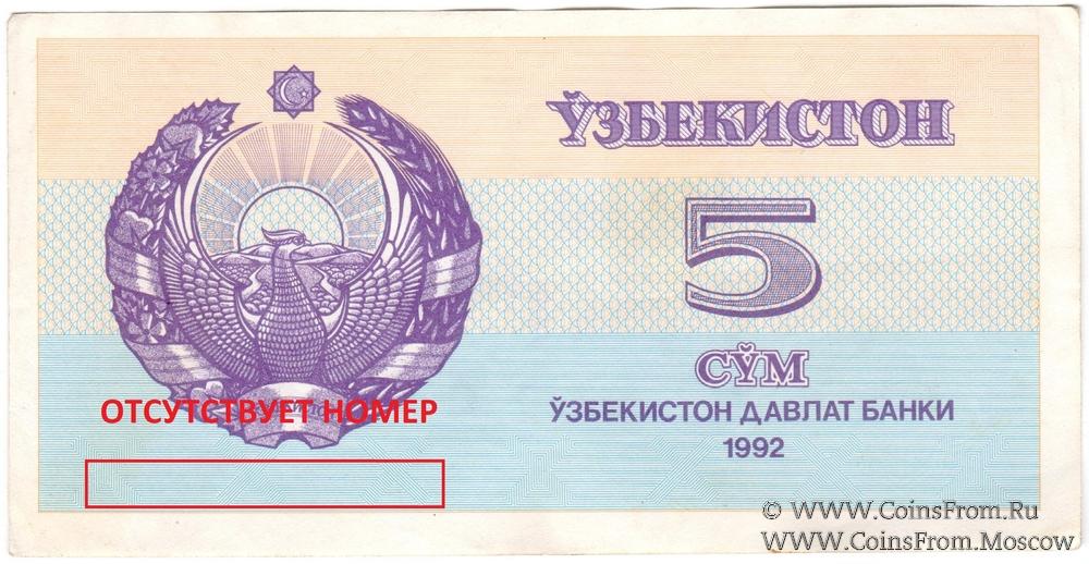 5 сумов 1992 г. БРАК