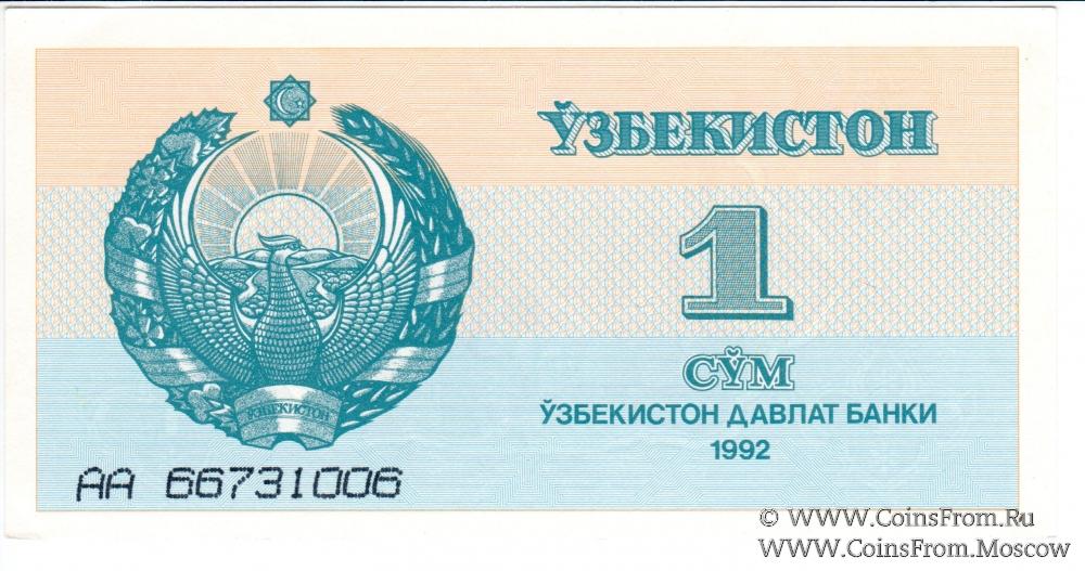 Выпуск 1992 г. Литеры серии острые. Государстенный банк Узбекистана (Ўзбекистон давлат банки).