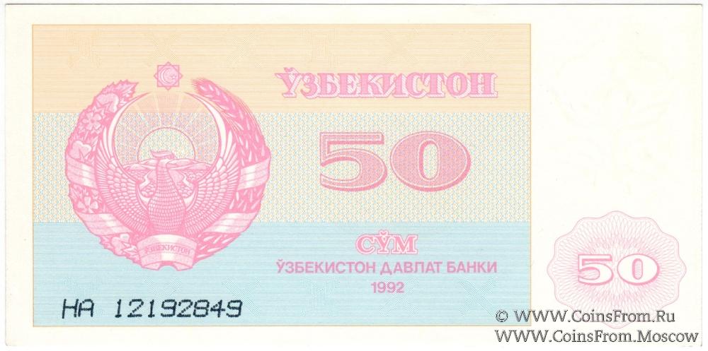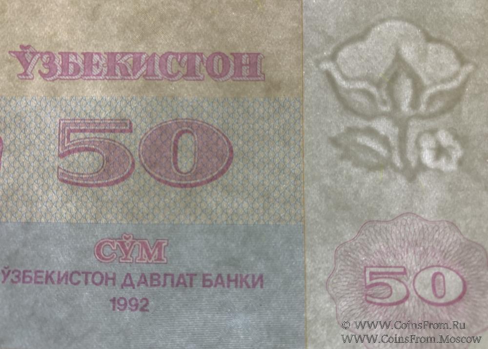 Выпуск 1992 г. БРАК (ПРОБА) печати: односторонний оттиск аверса. Государстенный банк Узбекистана (Ўзбекистон давлат банки).