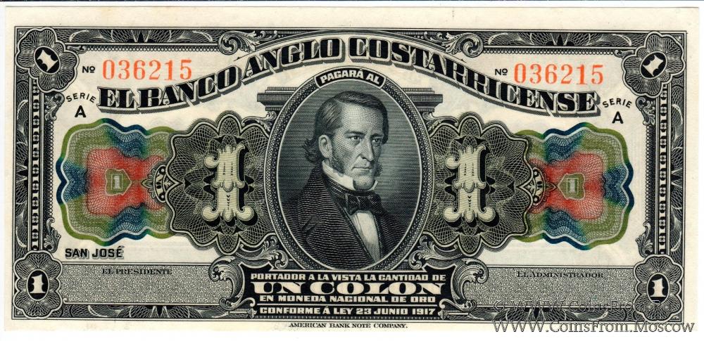 Выпуск 1917 г. Без подписей. Англо-Костариканский Банк (El Banco Anglo Costarricense).