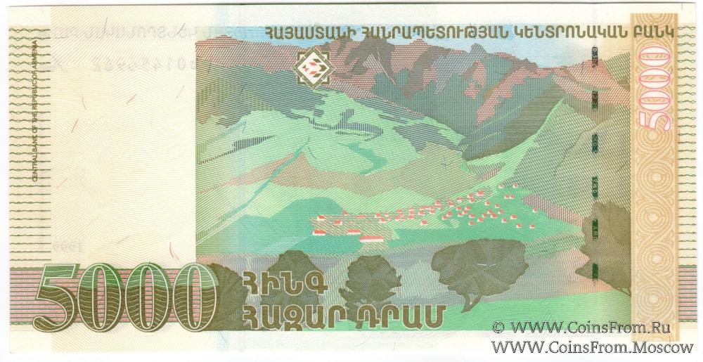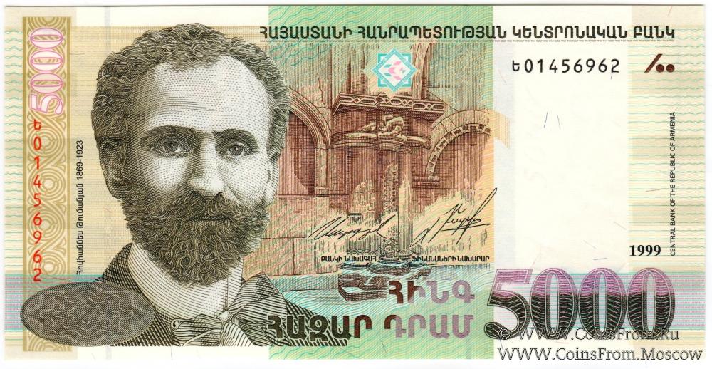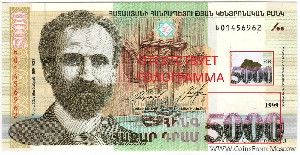 Выпуск 1999 г. БРАК: отсутствует голограмма на аверсе. Центральный Банк Республики Армения (Central Bank of the Republic of Armenia).
