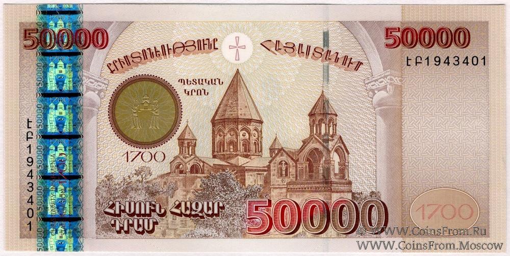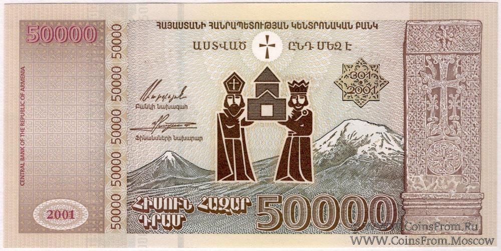 Памятный выпуск 2001 г. (1700лет христианства в Армении). Серия ԷԲ. Центральный Банк Республики Армения (Central Bank of the Republic of Armenia).