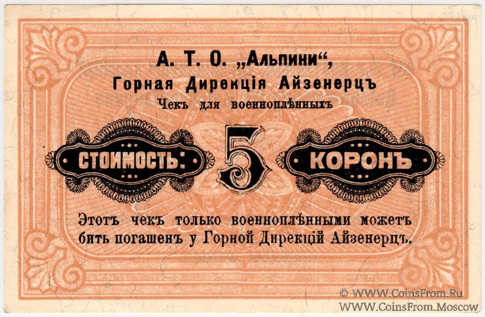 Выпуск 1916 г. Чек для военнопленных 2 выпуск (большой формы, без перфорации). Лагерь военнопленных Eisernerz (Айзенерц), Горная Дирекция. Первая Мировая Война.