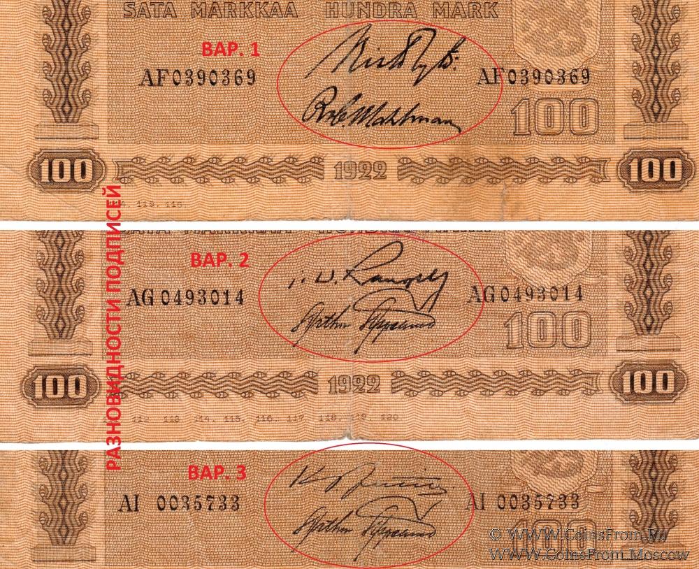Выпуск 1963 г. Литера C (Litt. C). Подписи (вар.2): Rangell - ... Банк Финляндии (Suomen Pankki, Finlands Bank).