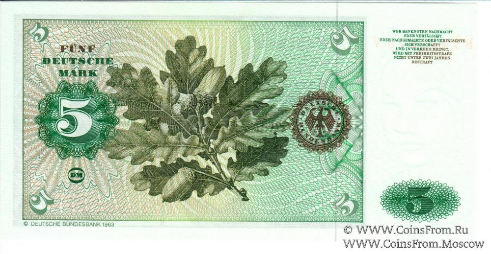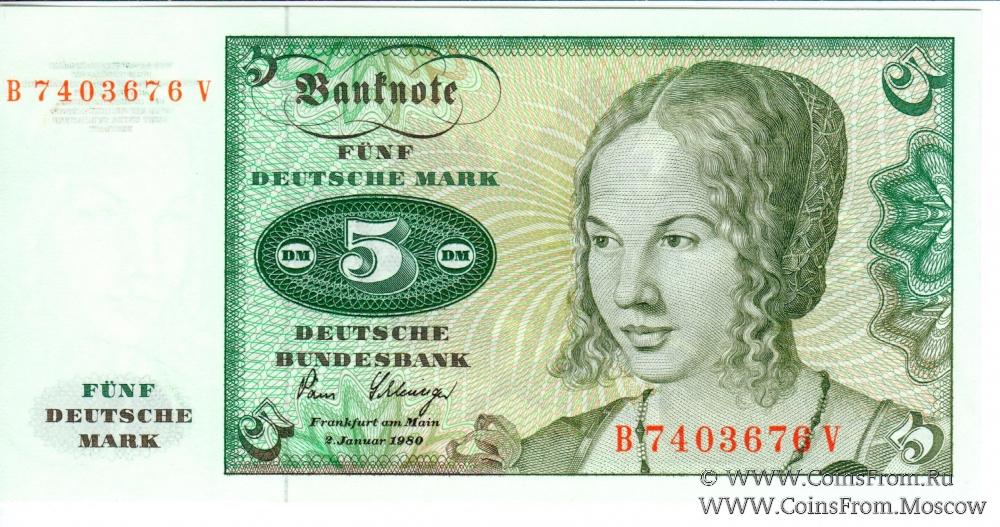 5 немецких марок 1980 г. с текстом на реверсе "c Deutsche Bundesbank 1963".