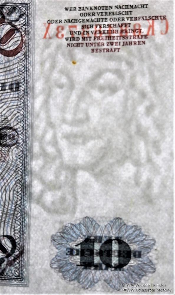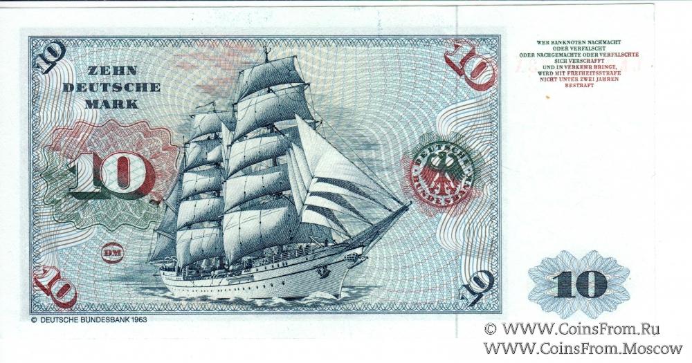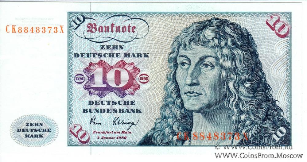 10 немецких марок 1980 г. с текстом на реверсе "c Deutsche Bundesbank 1963".