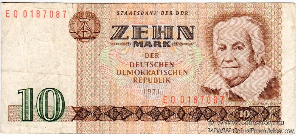 Выпуски банкнот Государственного банка ГДР (Staats Bank der DDR) 1971 - 1989 гг. Компьютерная нумерация. Водяной знак: бюст Клара Цеткин.