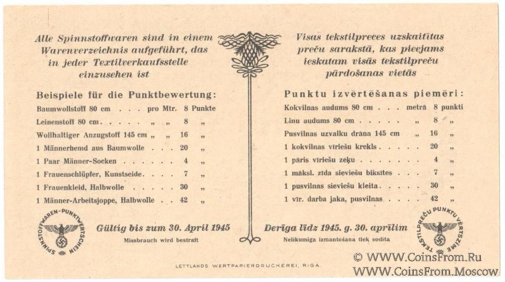 Текстильные талоны. Reichskommissariat OSTLAND. Без номера. LWR (LETTLANDS WERTPAPIERDRUCKEREI, RIGA).