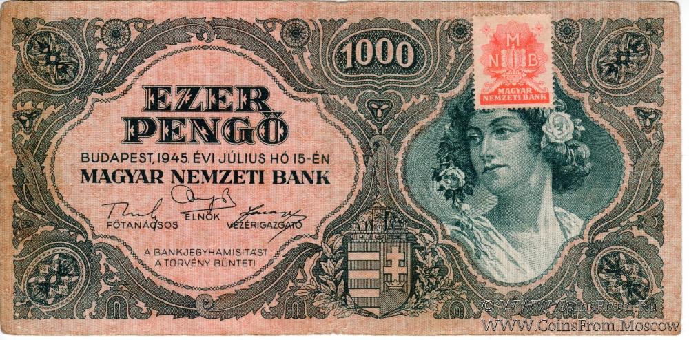 Выпуск банкнот Венгрии 1945 г. периода гиперинфляции.