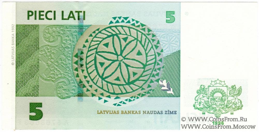 Выпуск 1993-1998 гг. (в латах). БРАК печати: расплылась краска на аверсе.