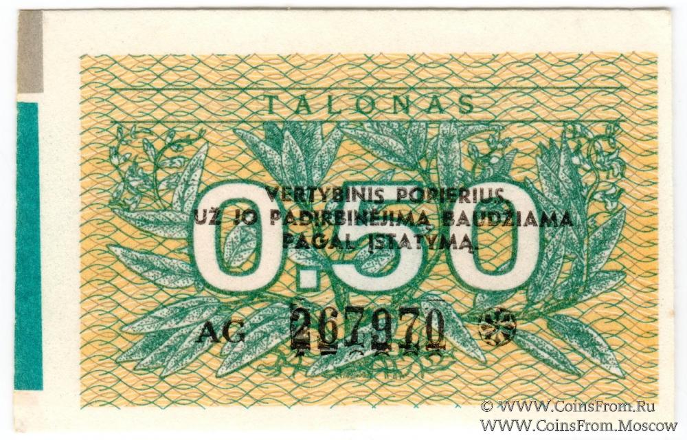 С надпечаткой: "Vertybinis popierius. Už jo padirbinėjimą baudžiama pagal įstatyma".