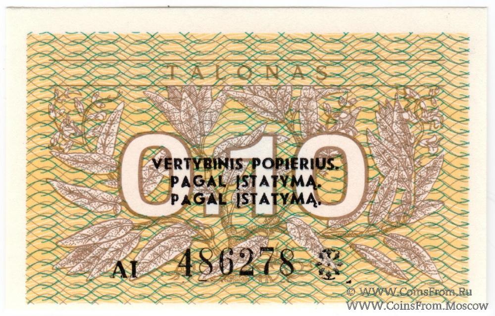 Выпуск 1991 г. БРАК (ошибка): текст PAGAL напечатан дважды. Талоны достоинством в 0.10, 0.20, 0.50 в качестве денежных знаков не использовались.