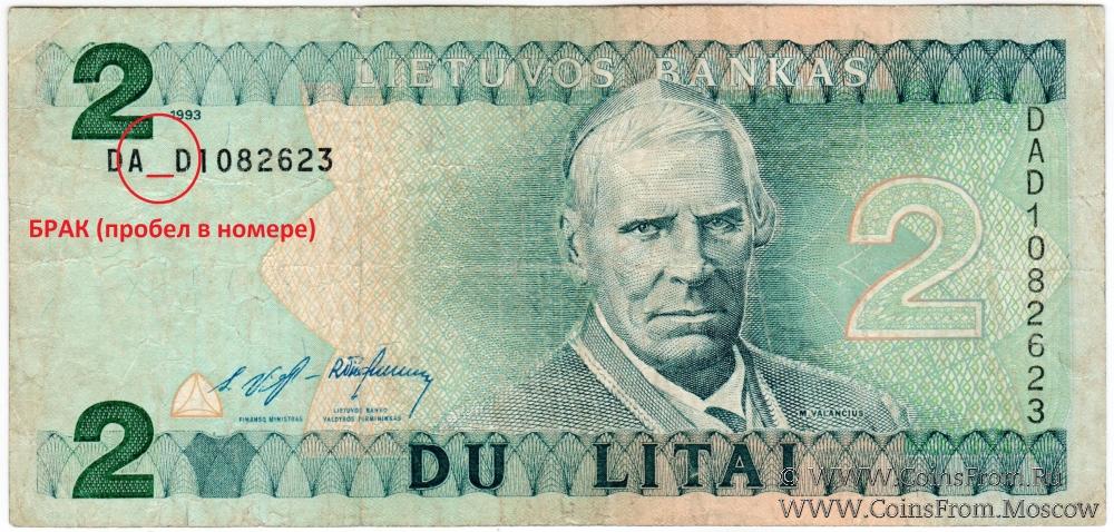 Выпуск 1993-1994 гг. БРАК: сбой нумератора (пробел в номере). Литовский банк (Lietuvos Bankas).