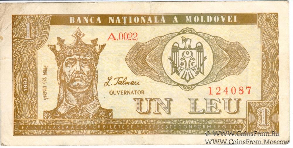Выпуск 1992 г. в леях. Серия A. Эмиссии Национального банка Молдовы (Banca Naţională a Moldovei).