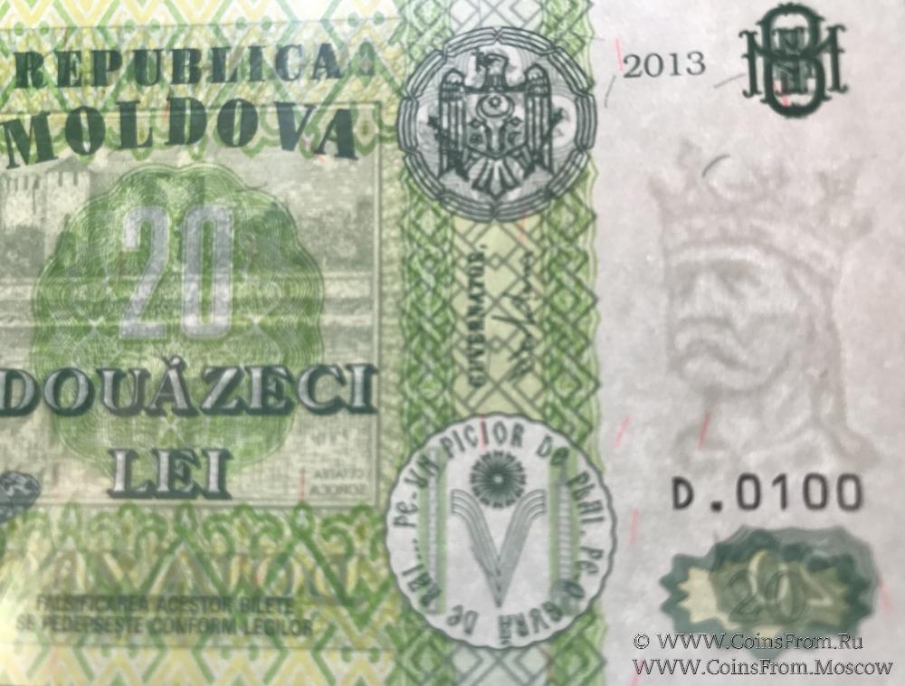 Выпуск 2013 г. в леях. Серия D. Эмиссии Национального банка Молдовы (Banca Naţională a Moldovei).