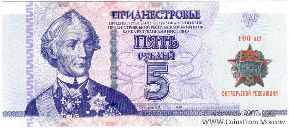 Памятные банкноты имеют формат и дизайн, аналогичные банкнотам модификации 2012 года соответствующего номинала, с нанесением в правом поле лицевой стороны банкноты специальной маркировки с изображением ордена "Октябрьской революции" с надписями: вверху "100 ЛЕТ", внизу – "ОКТЯБРЬСКОЙ РЕВОЛЮЦИИ".