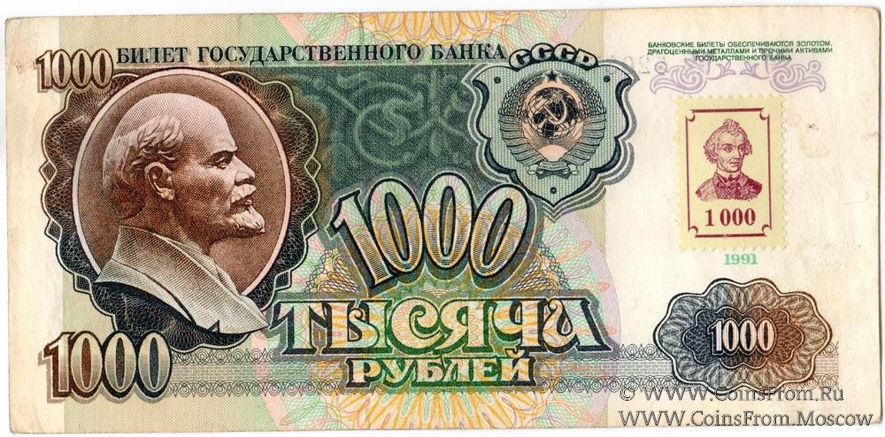 Банкнота СССР 1991 г. с маркой подтверждения (1994 г.). Приднестровский Республиканский Банк (Банка Республиканэ Нистрянэ / Приднiстровський Республiканський Банк).