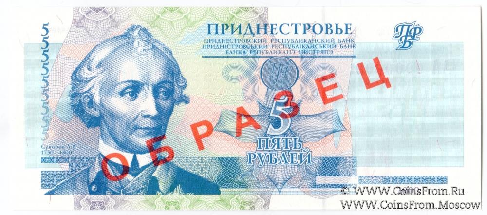 Выпуски 2000-2004 гг. Надпечатка красного цвета по диагонали слова "ОБРАЗЕЦ" (на аверсе и реверсе). Приднестровский Республиканский Банк.