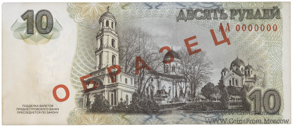 Выпуск 2007 г. Надпечатка красного цвета по диагонали слова "ОБРАЗЕЦ" (на аверсе и реверсе). Приднестровский Республиканский Банк.
