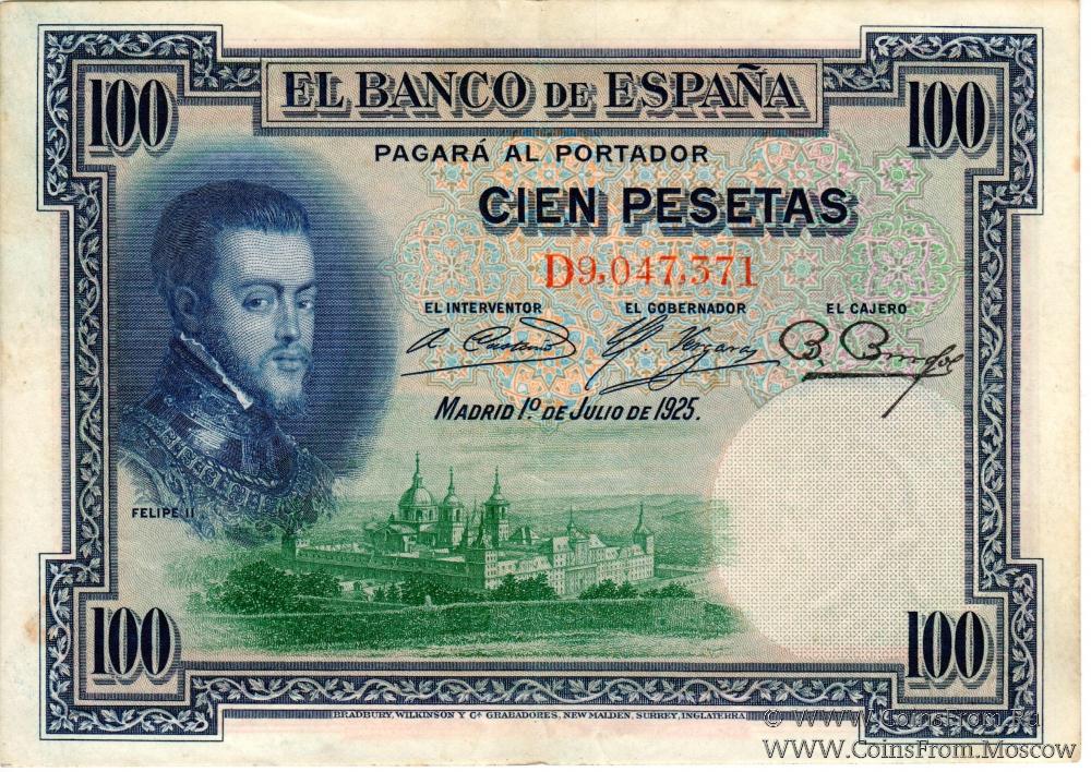Выпуск 1925 г. Серия D. Банкноты банка Испании (Banco de España).