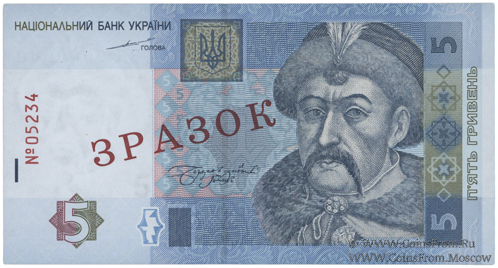 5 гривен 2004 г. ОБРАЗЕЦ (ЗРАЗОК)