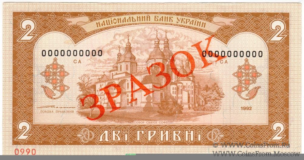 Выпуск 1992 г. ОБРАЗЕЦ (ЗРАЗОК) № 0990: диагональная надпечатка красного цвета "ЗРАЗОК" на аверсе и реверсе. Подпись - Ющенко.