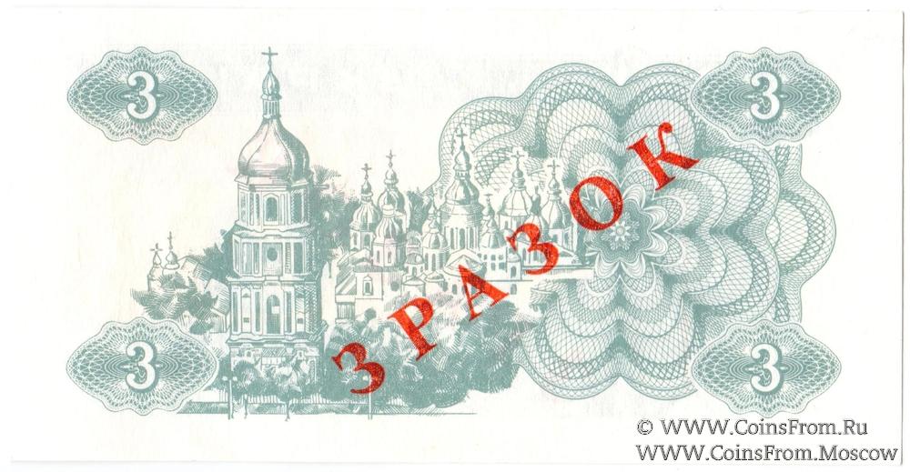 3 карбованца 1991 г. ОБРАЗЕЦ (ЗРАЗОК)