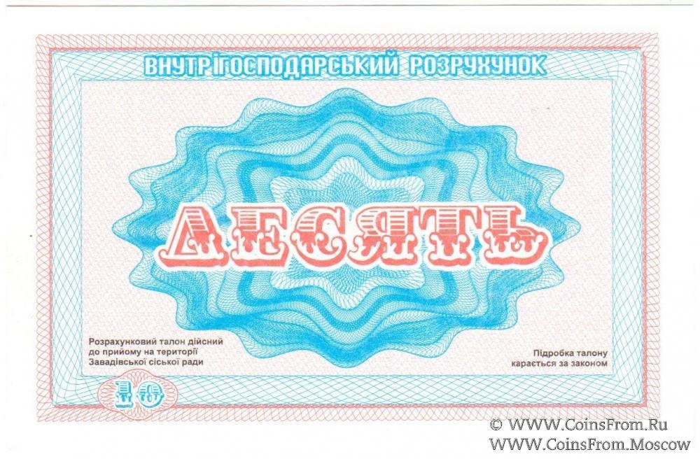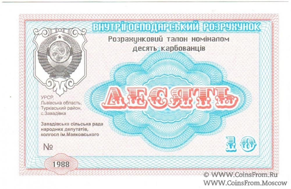 Расчетный талон 1988 г. Бланк без номера. Колхоз "Им. Маяковского".