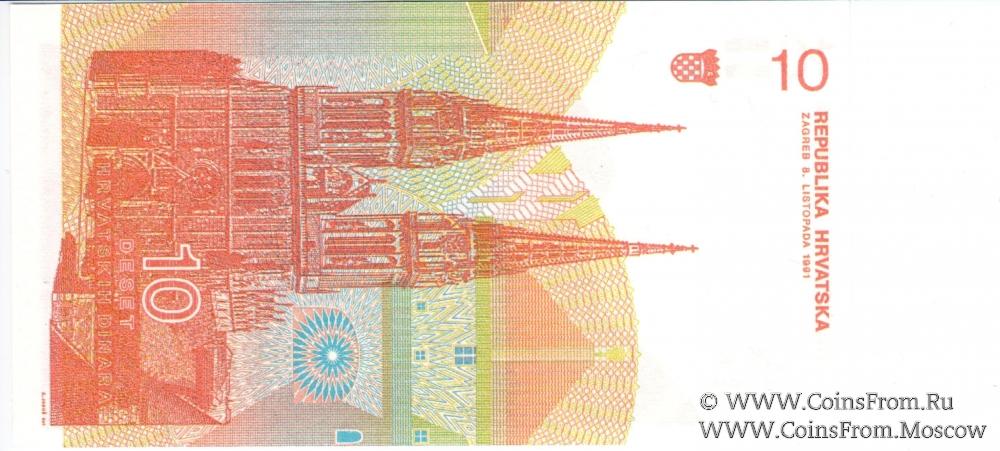 Выпуск 1991-1993 гг. в хорватских динарах.