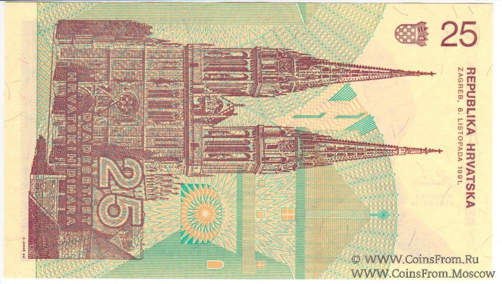 Выпуск 1991-1993 гг. в хорватских динарах.