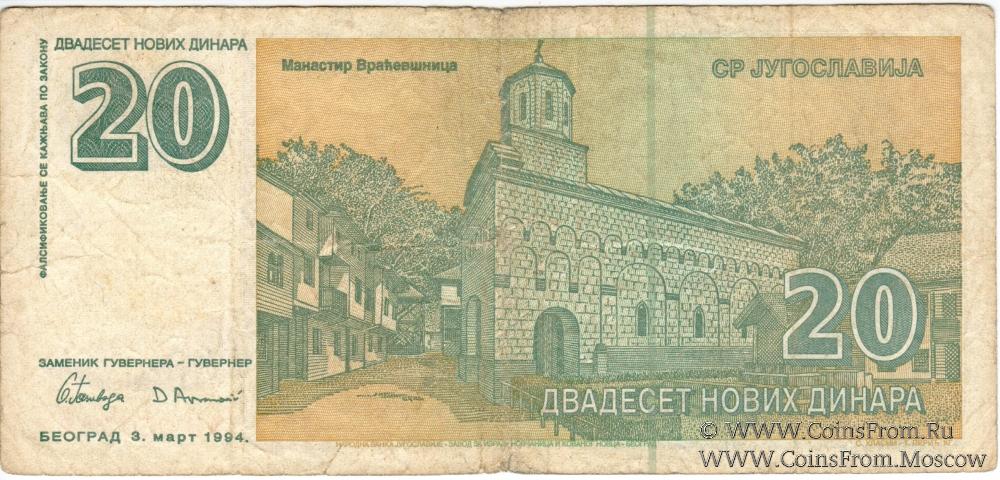 20 новых динар 1994 г.