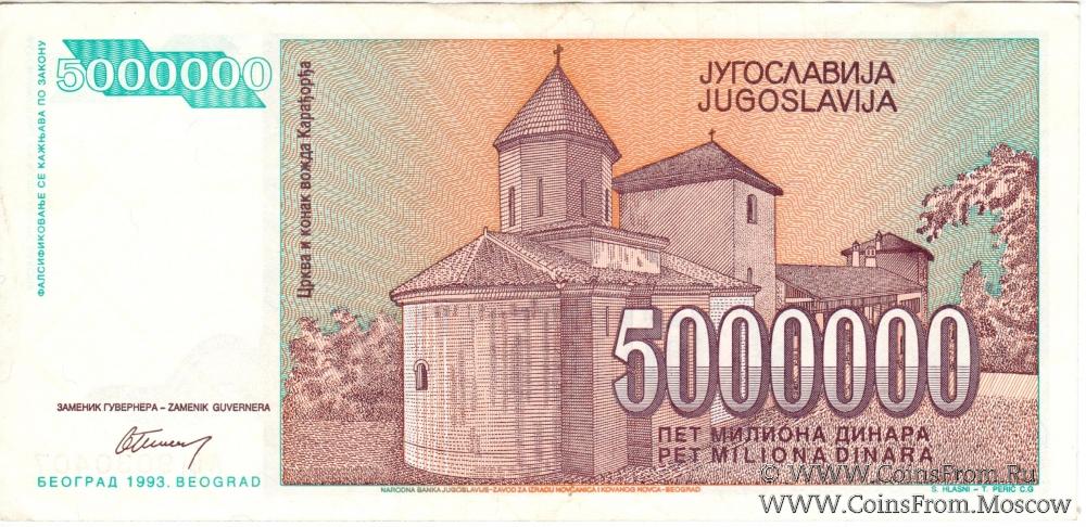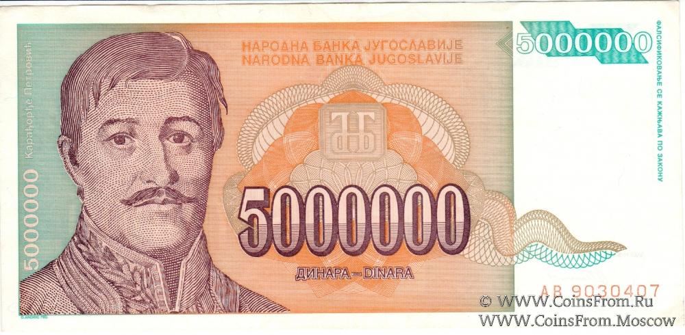 Выпуск денежных знаков Народного Банка Югославии (Народна Банка Juгославиjе). Выпуск 1993 г. Реформа.