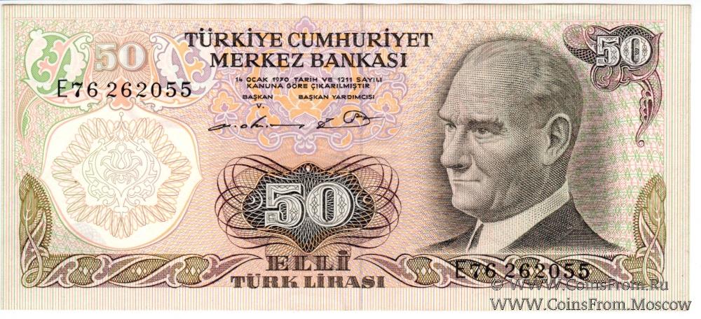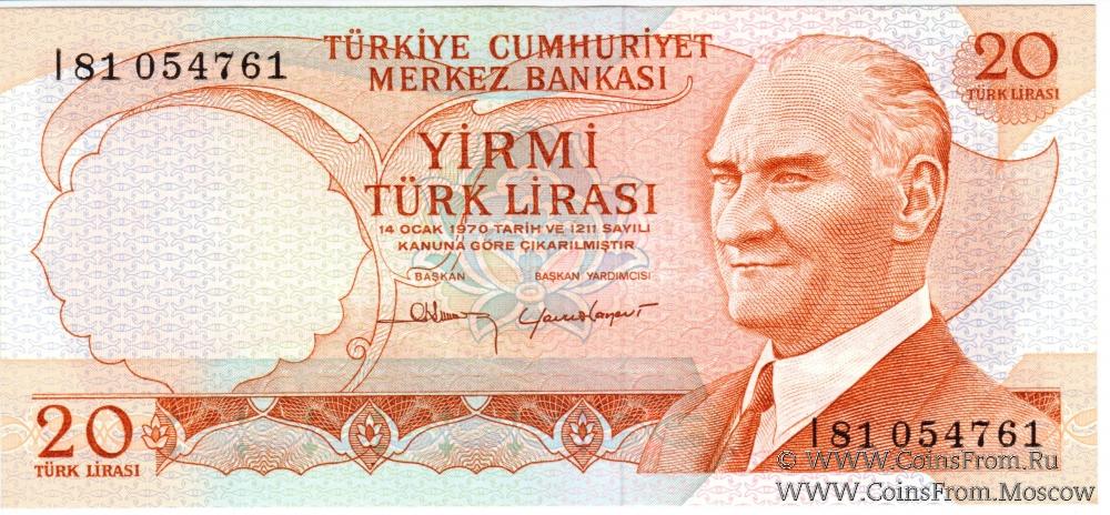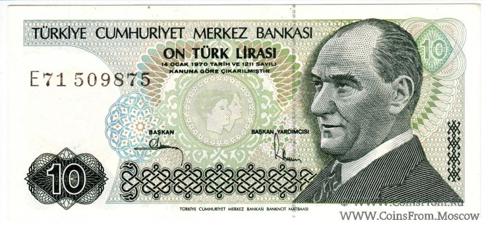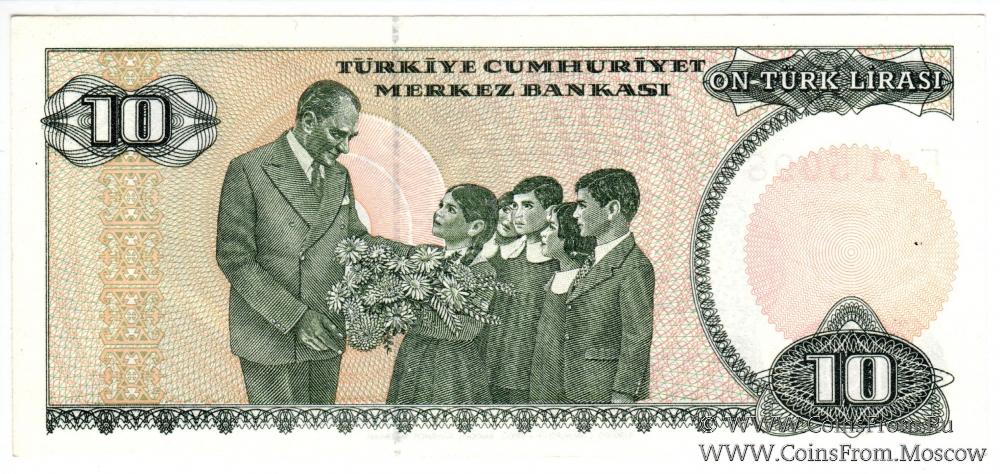 Выпуск 1970 г. Центральный банк Республики Турция (TURKIYE CUMHURIYET MERKEZ BANKASI). Печать - Devlet Banknot Matbaasi Ankara (DBM-A)