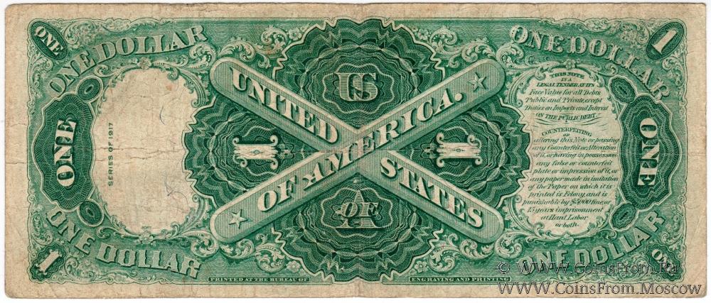 Серия 1917 г. Большой размер (Large Size Currency). Розетка и номер - красные (Small red). Подписи: Elliot-White.