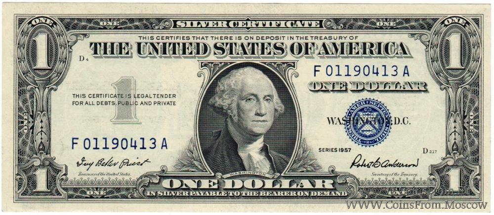 Выпуски 1928 - 1957 гг. Серия 1957. Номер формата: Х№Х. Подписи: Priest-Anderson. Small Size Currency.