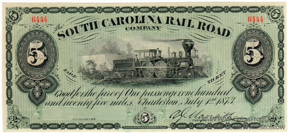 Эмиссии Железнодорожной компании Штата Южная Каролина (The South Carolina Rail Road Company). Без литеры.