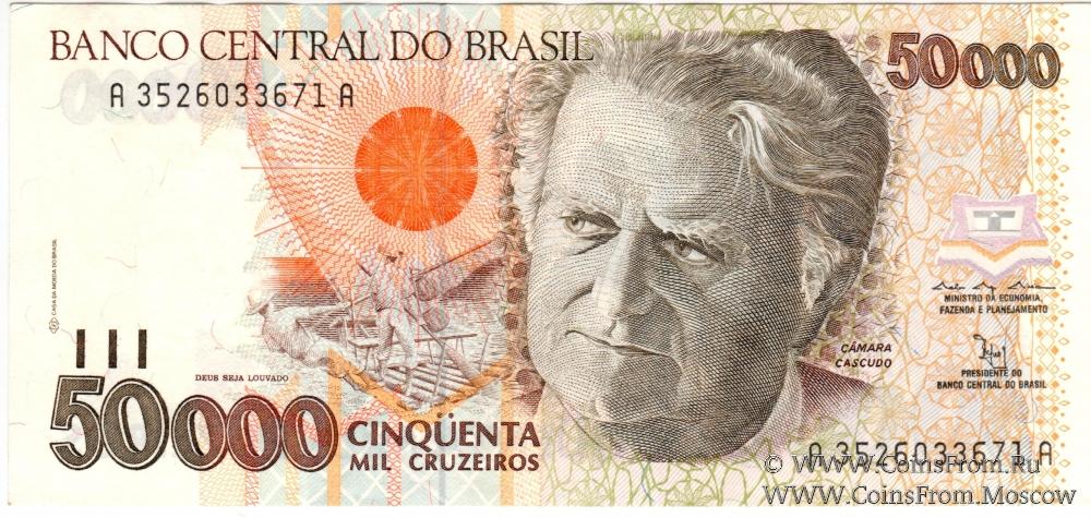Выпуск 1992 г. (в Крузейро / Cruzeiro). Литеры АA. Серии 0001-6289. Центральный банк Бразилии (Banco Central do Brasil).