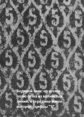 РЕВЕРС: В центре крупным шрифтом ПЯТЬ РУБЛЕЙ 1898, в фоне крупная цифра "5". В углах медальоны с женскими портретами в кокошниках. Медальоны в рамках из кружочков с цифрами "5". Текст - ИЗВЛЕЧЕНИЕ из Высочайшего манифеста о кредитных билетах. Рисунок темно-синего цвета, фоновая сетка голубая.