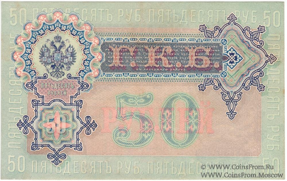 Государственный кредитный билет 50 рублей образца 1899 г. Управляющий И.П. Шипов. Серии АМ - АТ. № АО 692988. Кассир - Богатырев.