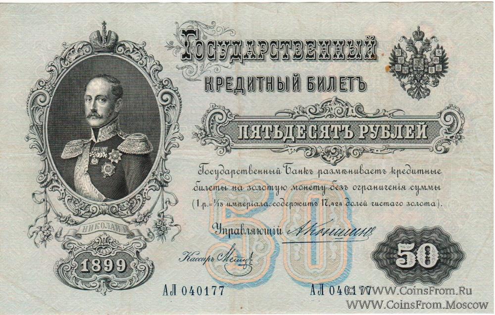 Государственный Банк. Государственный кредитный билет образца 1899 г. Управляющий - Коншин А.В., кассир - Метц. № АЛ 040177.