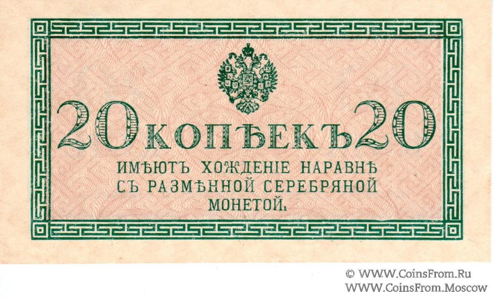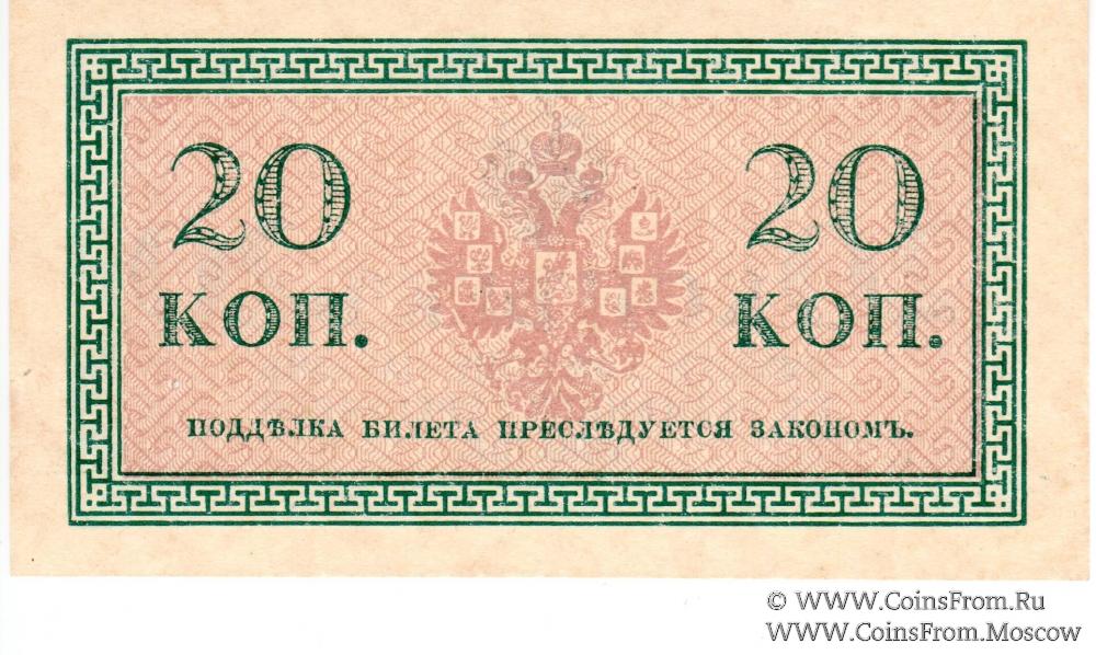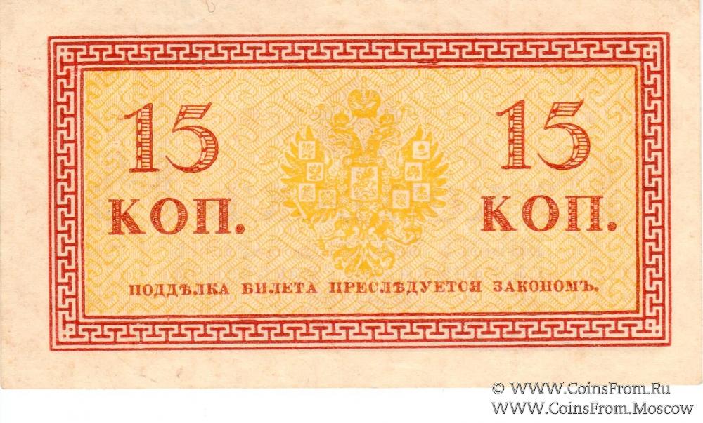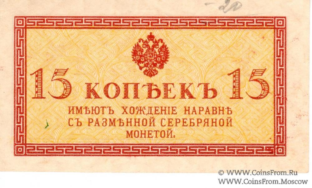 Согласно указу от 6 декабря 1915 года были выпушены в обращение казначейские знаки номиналами 1,2,3,5, 10, 15,20 и 50 копеек. Знаки 10, 15 и 20 копеек были отпечатаны, но в обращение так и не попали, основная их масса была уничтожена. На самих знаках наименования нет. Выпуск казначейских знаков осуществлялся в связи с нехваткой медной и разменной серебряной монеты. Находились в обращении до 1 августа 1919 г.