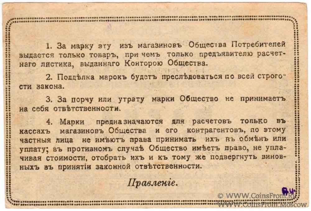 Марка без даты. Бланк с номером. Общество Потребителей рабочих и служащих. Таганрогское Металлургическое общество.
