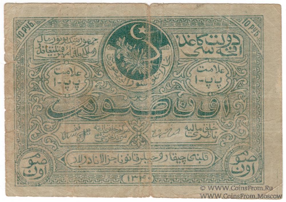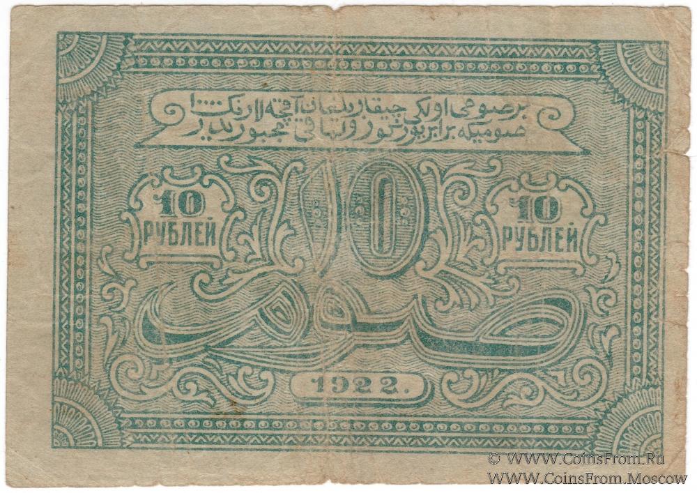 Водяной знак - "волны". Бумага голубовато-серая. Деноминация 1 нов. рубль = 10.000 руб. Государственные бумажные деньги 1922 (1340) г.