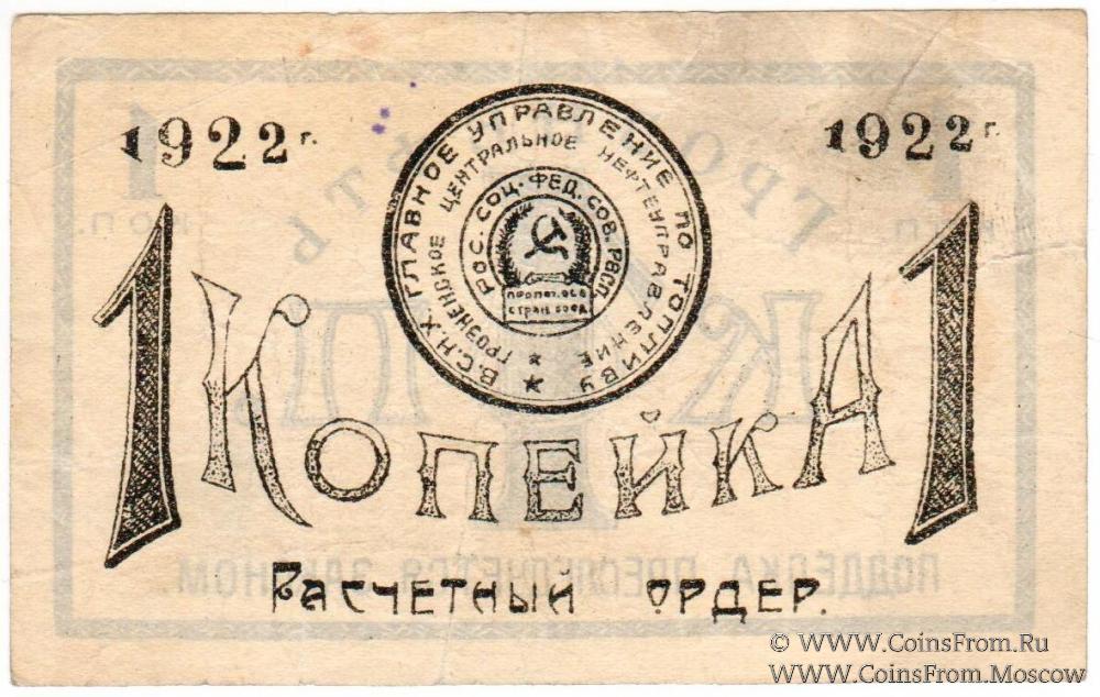 Расчетный ордер 1922 г. В.С.Н.Х. Главного управления по топливу. Грозненское центральное нефтяное управление. Грознефть.