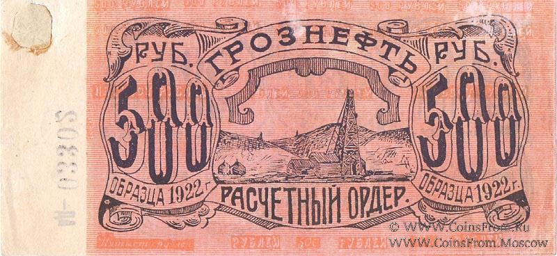 Расчетный ордер 1922 г. В.С.Н.Х. Главного управления по топливу. Грозненское центральное нефтяное управление. Грознефть.