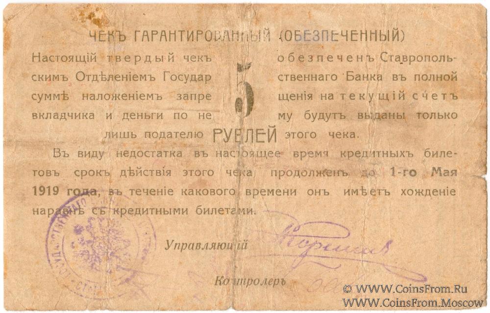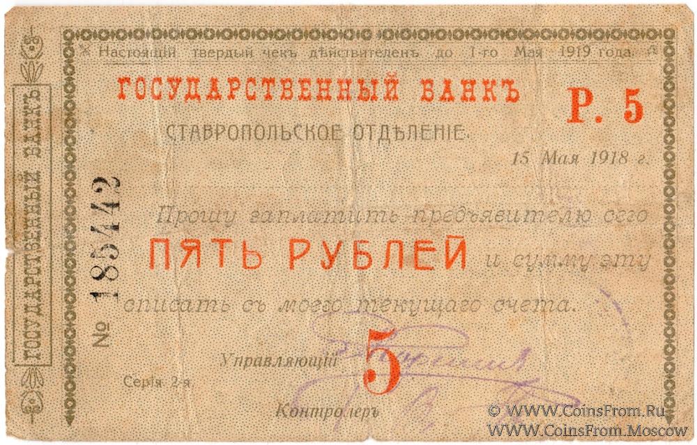 Чек 5 рублей 1918 г. (Ставрополь)