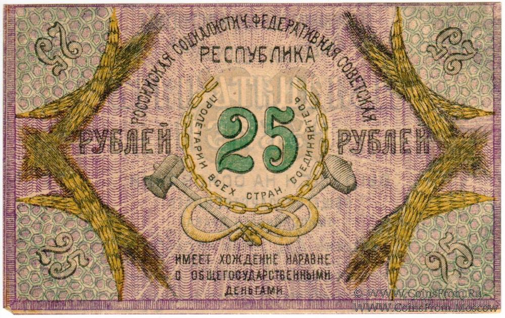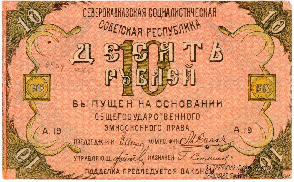 Северо-Кавказская Советская Социалистическая Республика 1918 г.: 10 рублей ("общегосуд...ого") и 25 рублей ("общегосуд...аго").