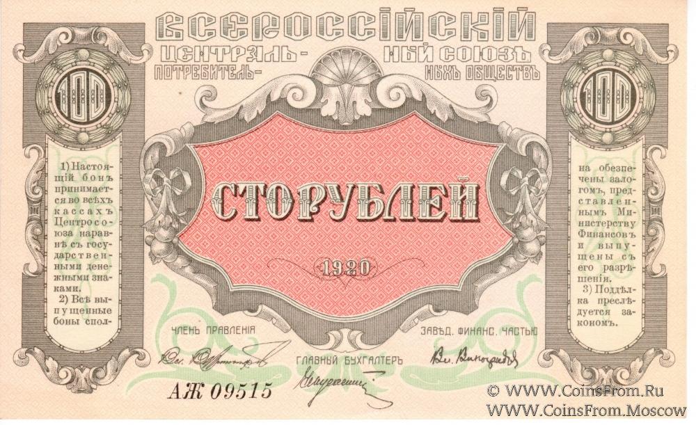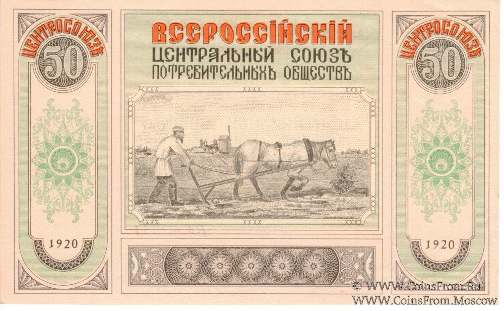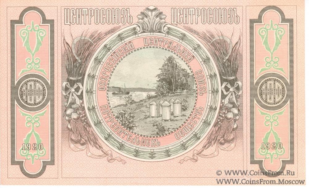 Бон 1920 г. номиналы: 50 рублей и 100 рублей.