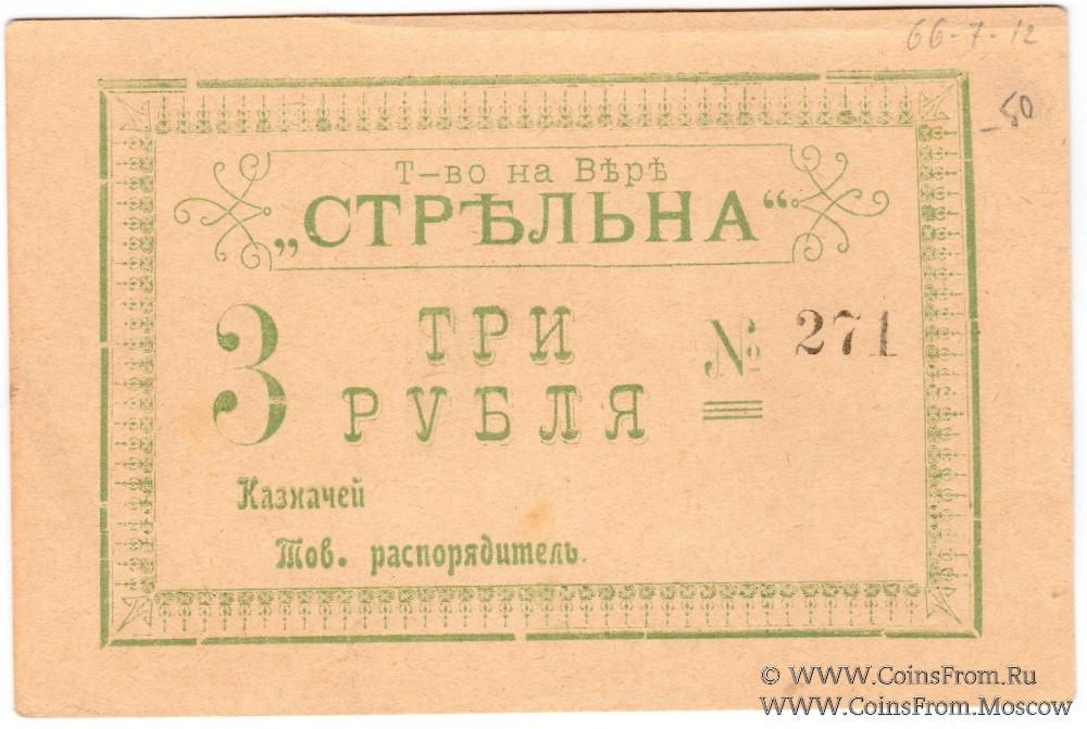 3 рубля 1919 г. (№ 271; бланк без подписей; серо-желтая бумага).